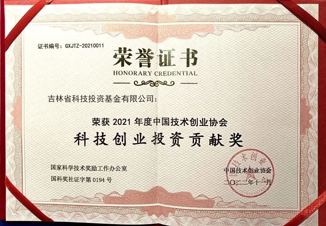 近日,“2021年度中國技術(shù)創(chuàng)業(yè)協(xié)會科技創(chuàng)業(yè)貢獻(xiàn)獎(jiǎng)”評審結(jié)果正式公示,吉林省科技投資基金有限公司(以下簡稱“吉林科技投資”或“公司”)成功入圍,榮獲2021年度“科技創(chuàng)業(yè)投資貢獻(xiàn)獎(jiǎng)”(全國18家,吉林省2家)。